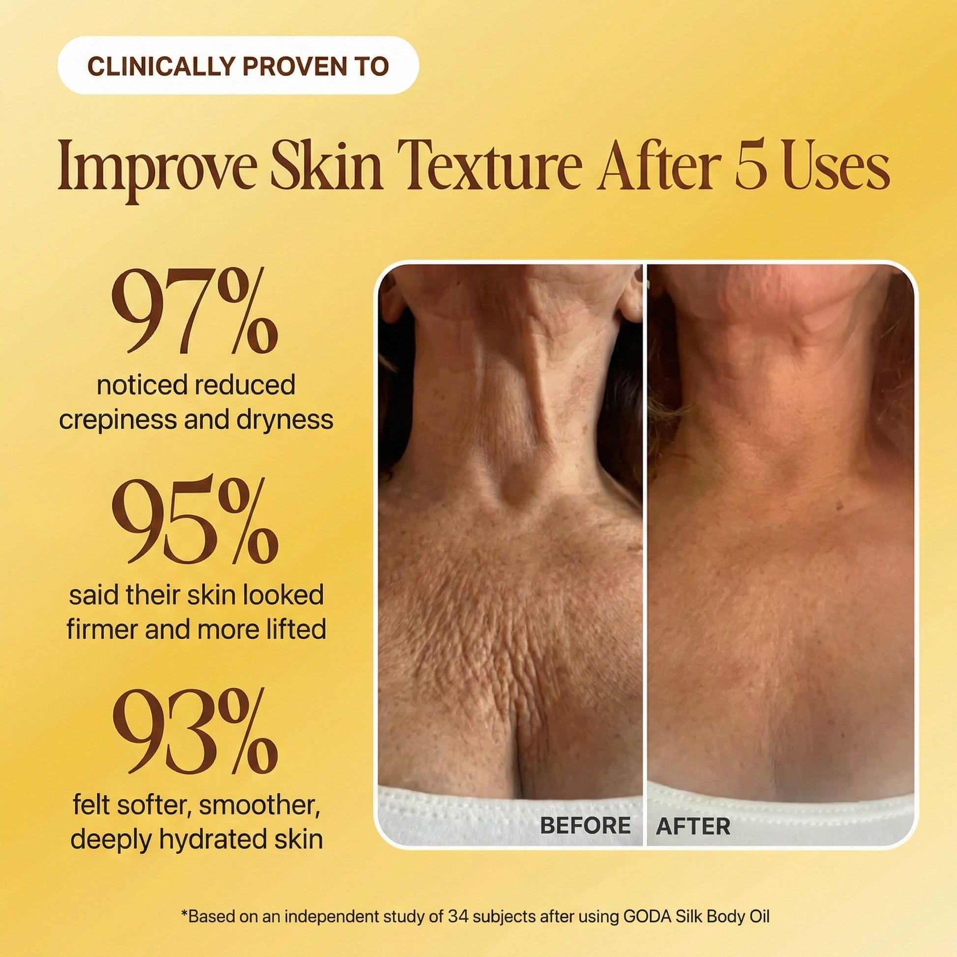 I'd tried so many creams, so many serums, but they all promised miracles and delivered little. My skin was still showing the same signs of aging, and I started to feel defeated. I didn't want to feel like I was stuck in a cycle of empty hopes. Then, a friend recommended Silk Body Oil from Goda. She told me it had worked wonders for her, and I figured, what did I have to lose?